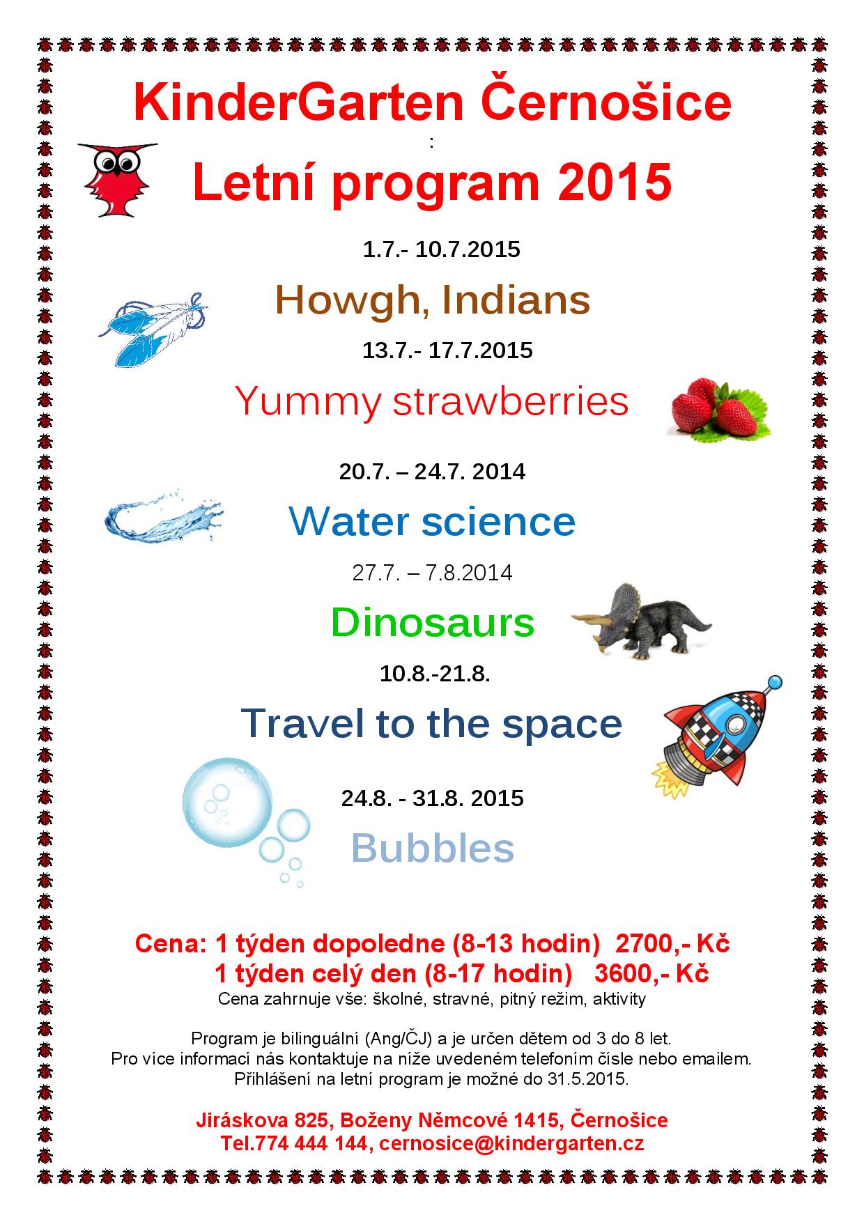 KinderGarten > Anglické školky > Černošice > Novinky > Letní program 2015