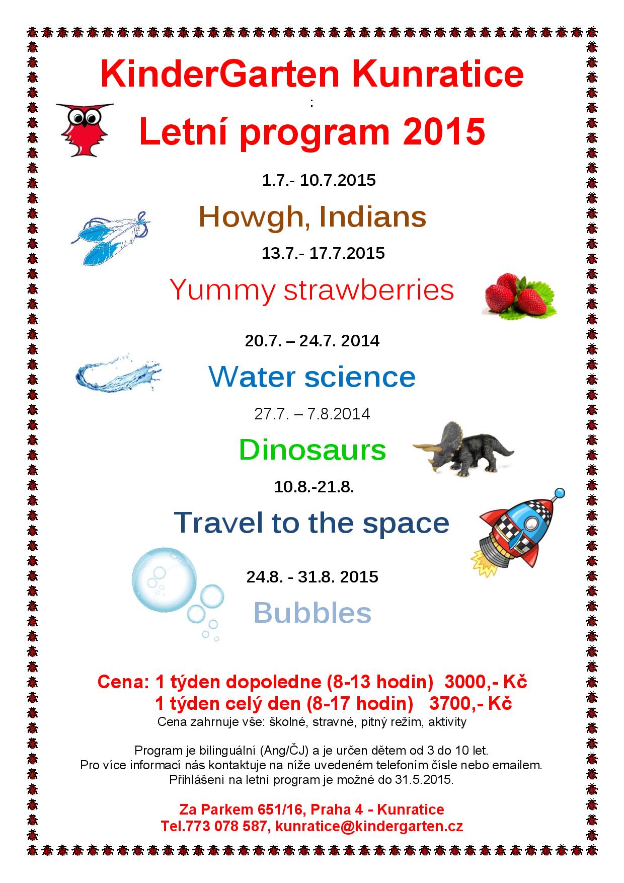 KinderGarten > Anglické školky > Praha 4 Kunratice > Novinky > Letní program 2015