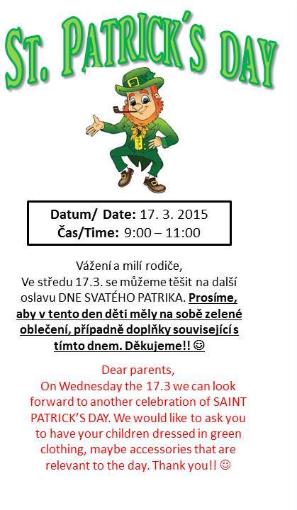 KinderGarten > Anglické školky > Praha 9 Střížkov > Novinky > St. Patrick´s Day