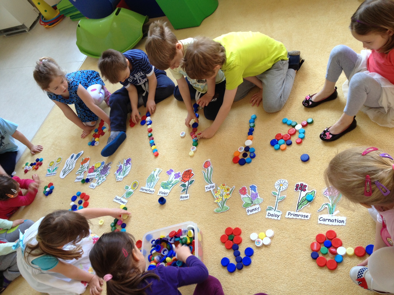 KinderGarten > Česko-Anglické školky > Praha 4 Branik > Den v MŠ > Kytičky z PET víček
