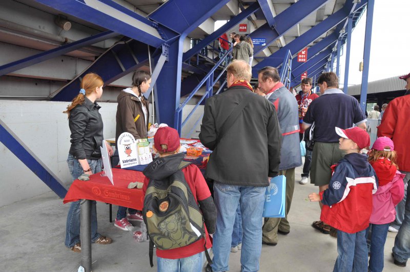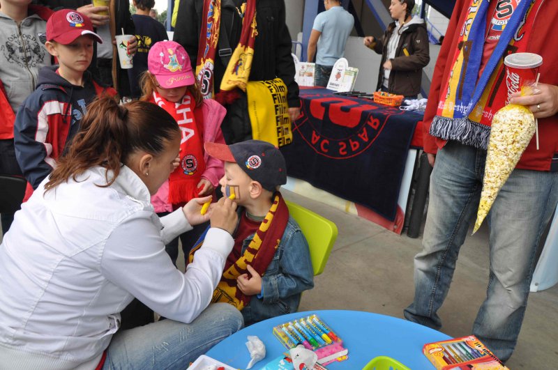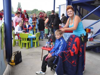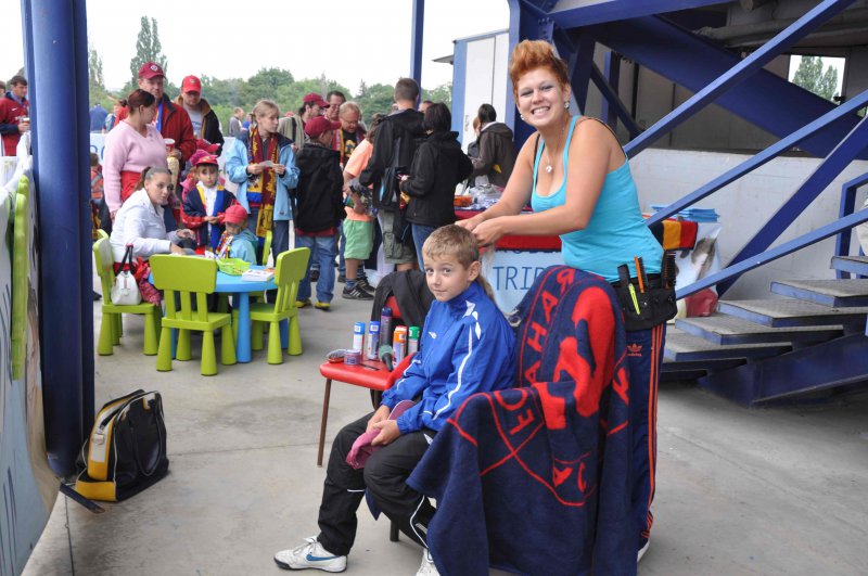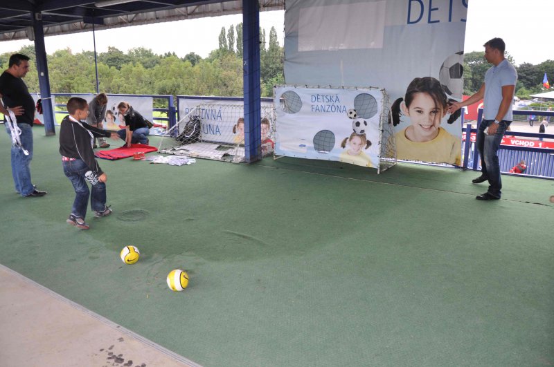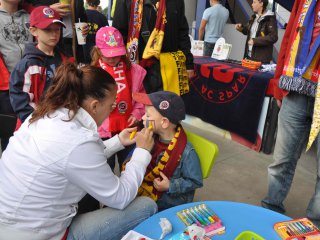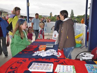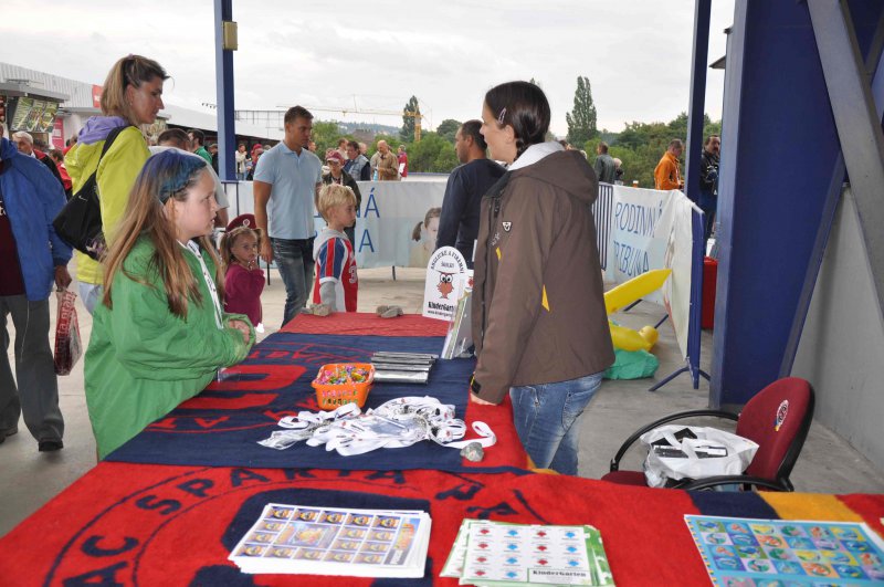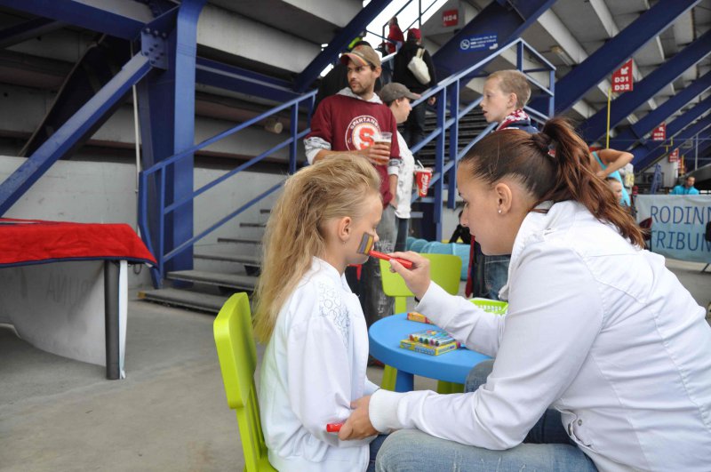 Kromě stánků s občerstvením najdete na ochozu za Rodinnou tribunou stánek, kde si můžete zapůjčit fandící pomůcky, sedáky a deky (v případě chladnějšího počasí). Tváře malých fanoušků zajisté rozzáří klubové barvy, s jejichž namalováním rádi pomohou pracovníci KinderGarten – anglické a firemní školky.