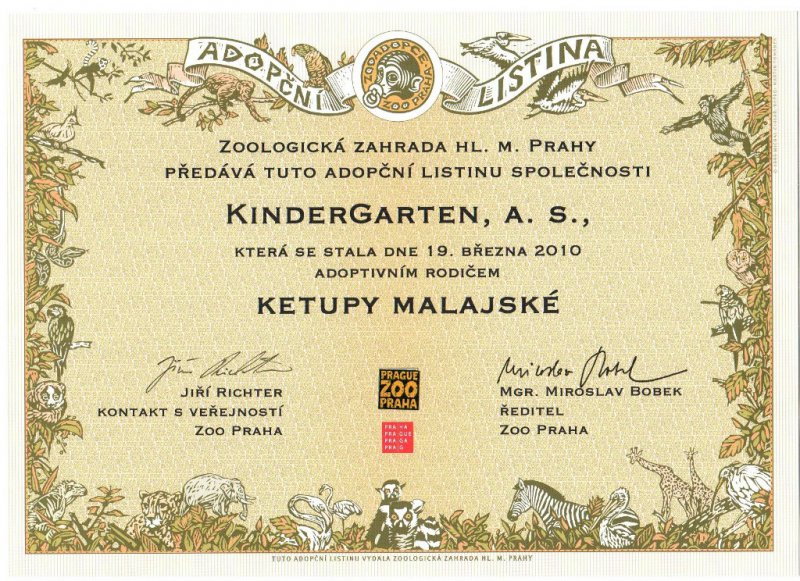 V dolní části pražské ZOO v tzv. bažantnici naleznete Ketupu malajskou z řádu sov, kterou KinderGarten adoptovala.