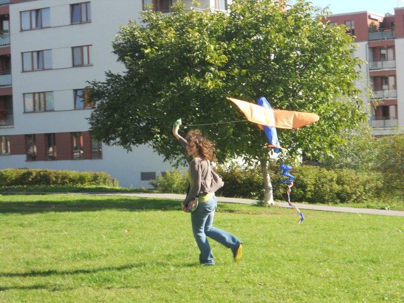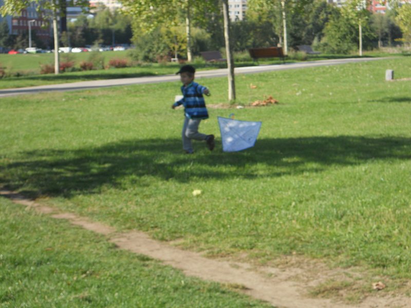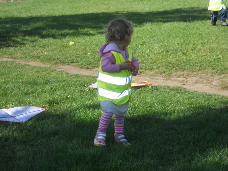 I přes bezvětří jsme se úkolu pouštění draků zhostili statečně. Běhali jsme jako o závod a dráčci se vesele vznášeli v oblacích.