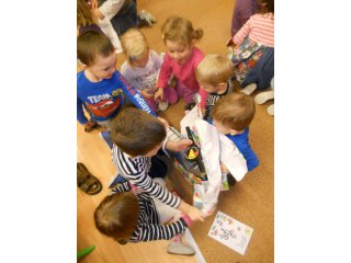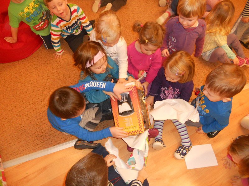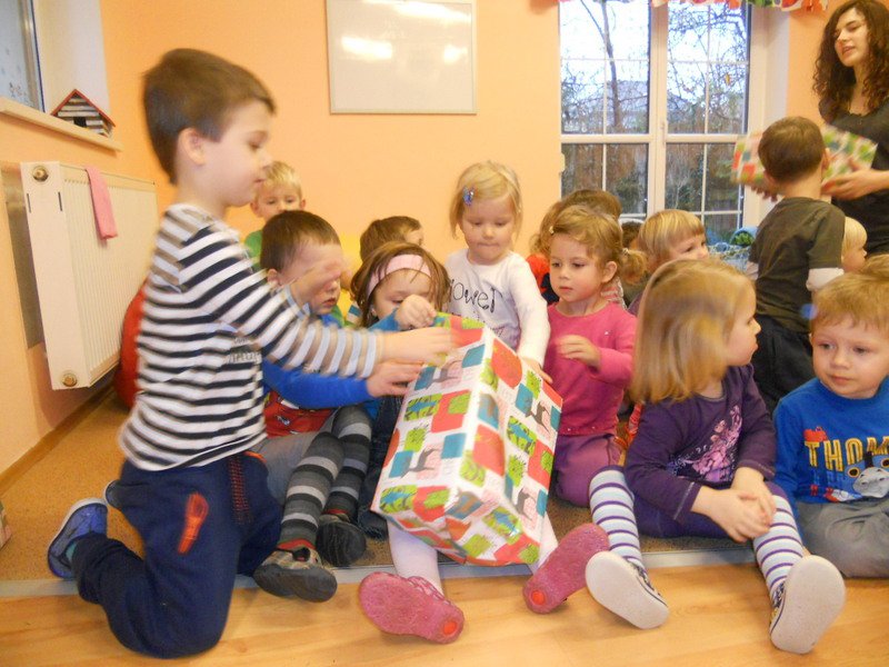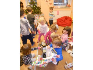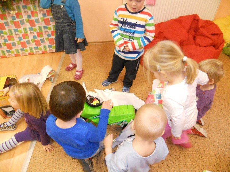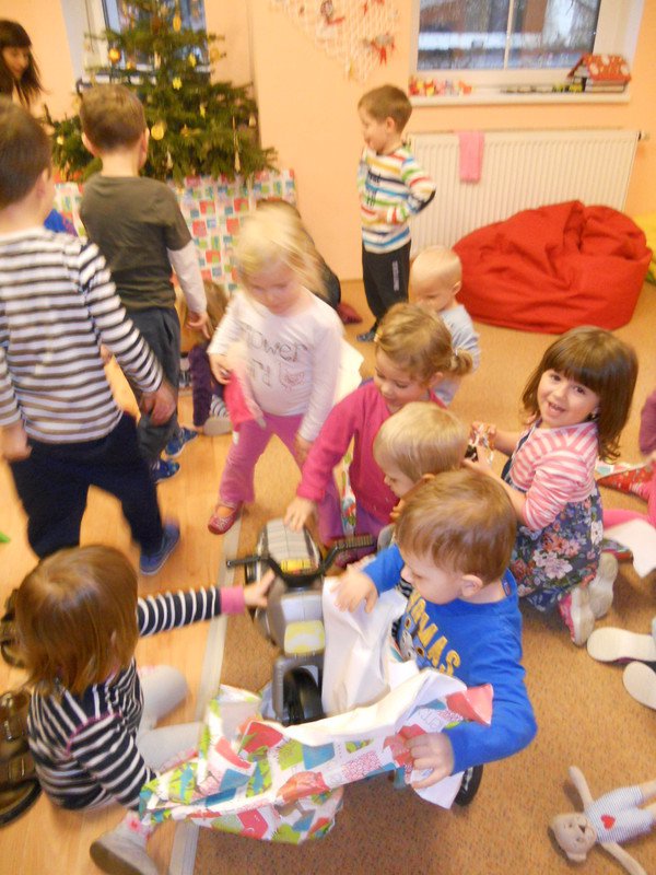 Děti si společně rozbalily dárečky, které našly pod vánočním stromečkem ve školce. Nové hračky jim udělaly velkou radost a největší úspěch měly tolik oblíbené motorky :-).