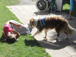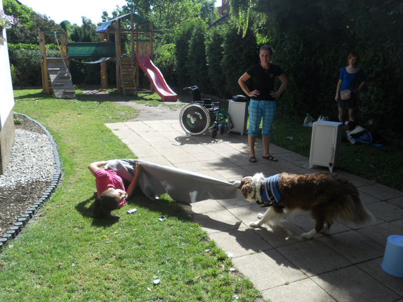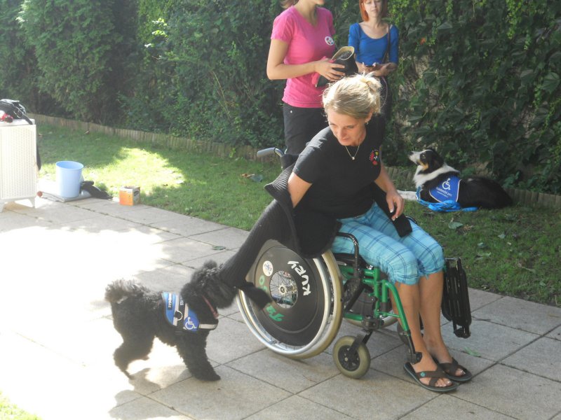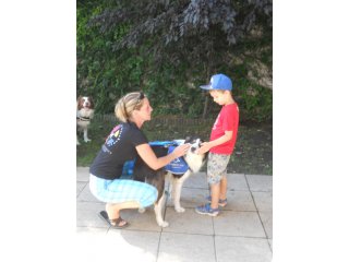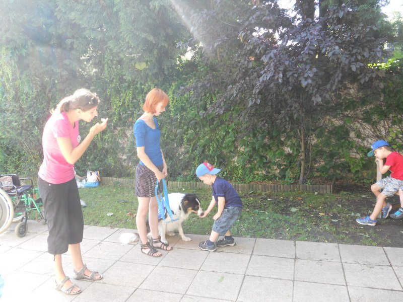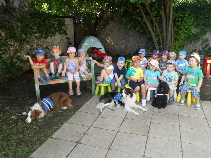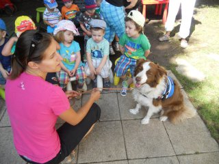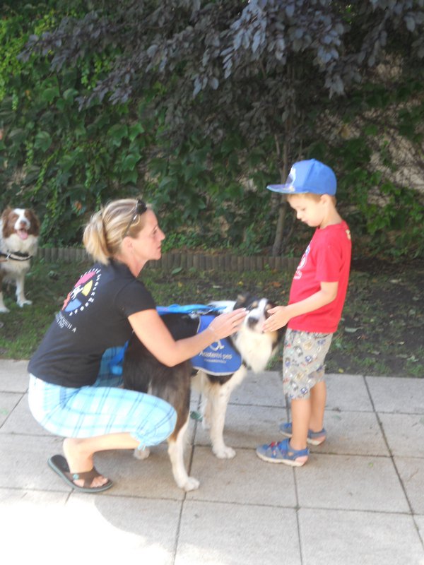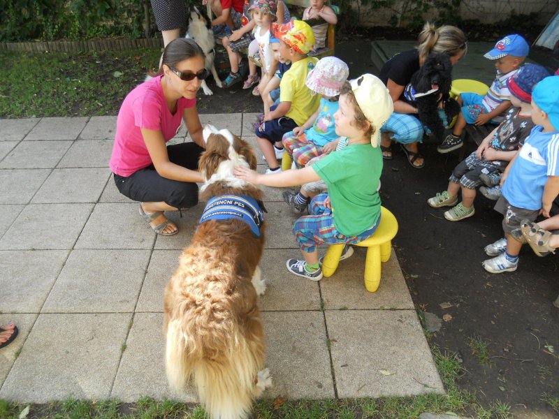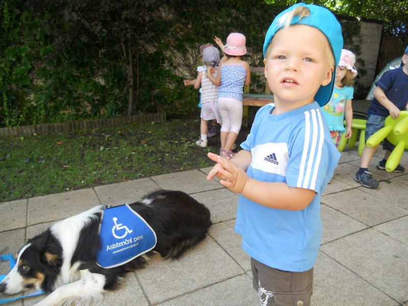 Ve středu 7. srpna nás ve školce navštívíly trenérky z organizace Pestrá společnost o.p.s., které nám předvedly výcvik asistenčních pejsků, kteří pomáhají zdravotně postiženým lidem. Vidět, jak pejsci pracují a umí svému pánovi přinést léky, telefon či pomoct při svlékání oblečení, bylo pro nás velmi zajímavé a poučné.