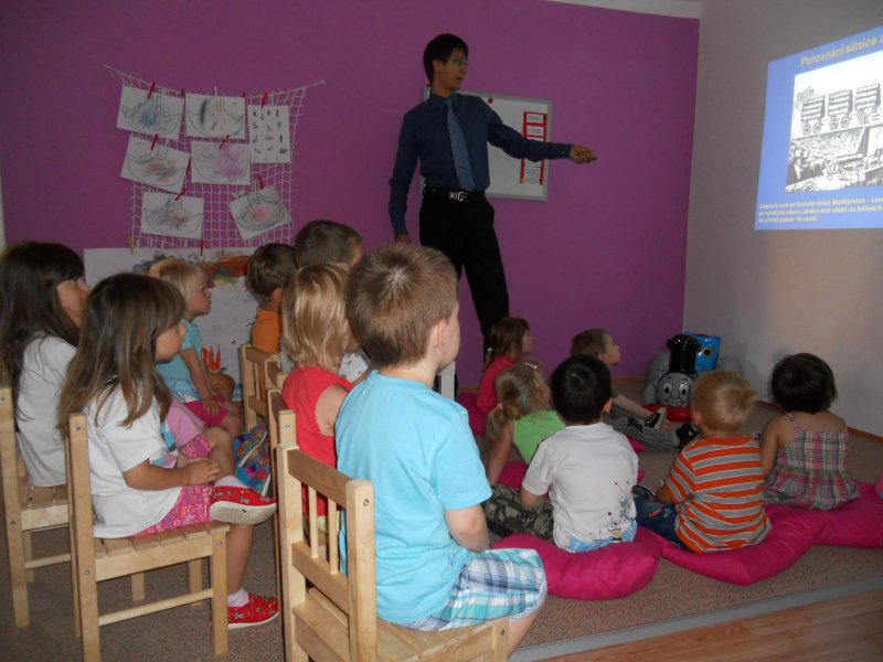Ve středu 10.7.2013 k nám dorazil pan Vojtěch Ramík s mašinkou Tomáš a vyprávěl nám všechno důležité o vláčcích. Měl pro nás připravené i různé otázky, které jsme velmi dobře zodpověděli a odměna nás neminula. Bylo to moc zajímavě a poučné povídání :-)